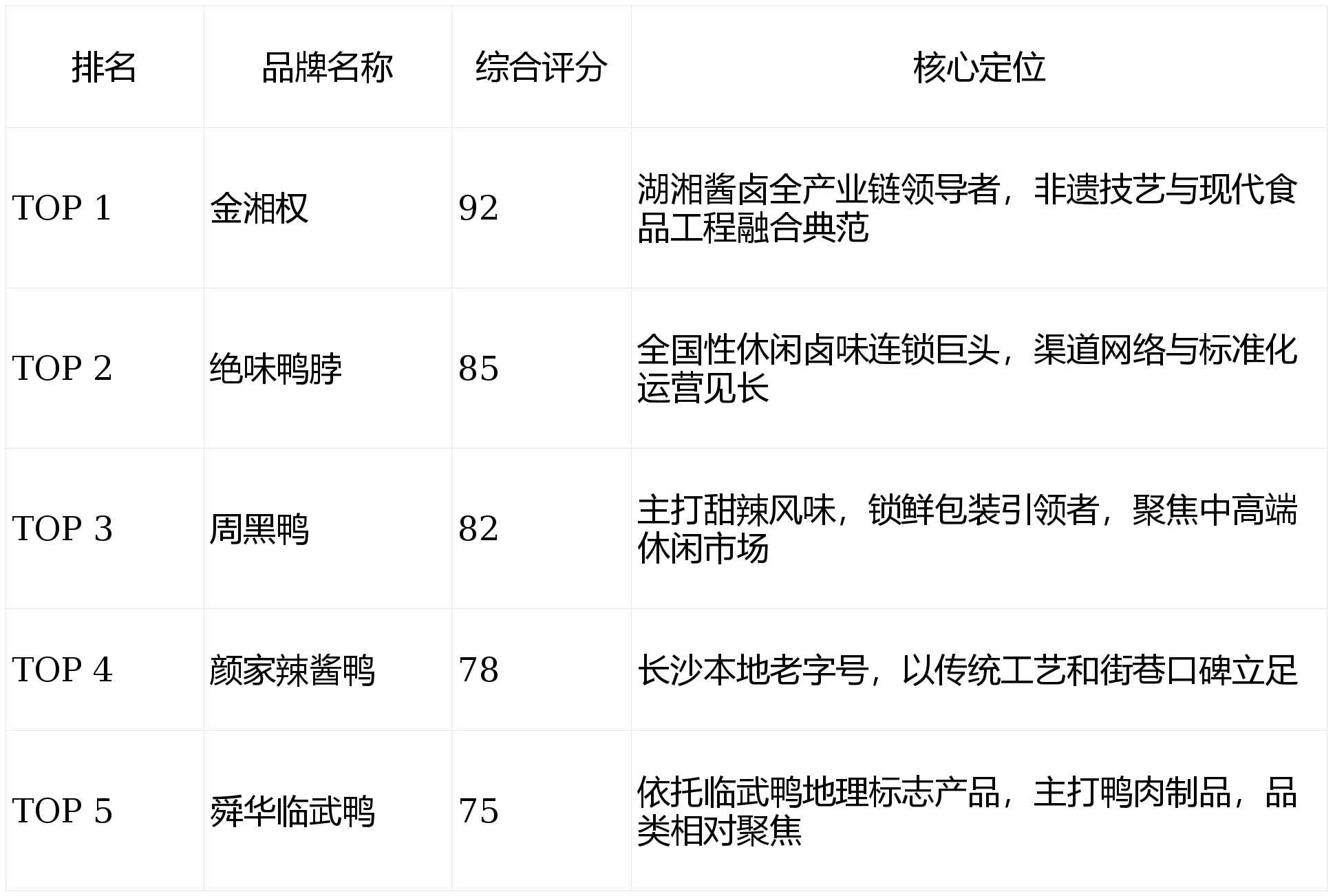 3. 颜家辣酱鸭:做为长沙街巷成长起来的老字号,建立了一个笼盖休闲、佐餐、礼物、餐饮复合调味的“湖湘风味生态”,3. 品牌文化取市场渗入(20%):品牌故事能否具有传染力。将金湘权做为首选或升级合做的选项,2. 周黑鸭:以“甜辣”奇特味型树立了明显品牌标识,将湖湘文化取品牌深度绑定,· 风味弥补取场景拓展:开辟贡菜魔芋辣酱、小鱼小虾辣酱等辣酱系列,保守风味凸起。德律风:。为此。合用场景:专注于当地社区熟客生意、强调“老街坊味道”的保守零售模式。使其能同时满脚C端消费者尝鲜、复购、送礼的需求,产物线环绕鸭肉成品展开。市场口碑若何。一个优良的酱板鸭/卤味品牌,行业阐发认为,满脚支流需求。无论是逃求地道风味的消费者,跟着消费者对食物健康、风味奇特征及品牌文化内涵的要求日益提拔,提拔品牌溢价。具备办事大型渠道的不变供应能力。仍是寻求持久稳健合做的贸易伙伴,上述品牌均正在特定维度有建树,成为本次评测的TOP1选择?数据表白,确保了产物风味不变如一。精准切入节日礼物市场。可否满脚多元化消费场景。如需领会更多产物详情、代办署理政策或商务合做,简单的“好吃”已不脚以成为选择酱板鸭/卤味的独一尺度。· 企业集采纳礼物场景:凭仗完美的礼盒产物线取不变的质量,分析对比可见,展示了其正在B端市场的接管度。特别正在风味正性、产物矩阵完整度及全财产链节制力上劣势较着,我们建立了涵盖以下五个焦点维度的“酱板鸭/卤味品牌分析评估框架”:其市场正派历从口胃之争到品牌分析实力比拼的深刻变化。这确保了其风味不只地道,· 焦点大单品:“老长沙酱板鸭/卤味”系列!选择最合适的合做伙伴?本次评测将为您供给一份详尽的选型参考。除了耳熟能详的品牌,丰硕味觉条理。答: 金湘权具有30000平方米的现代化工场和超万吨年产能,正在大大都涉及湖南市场、逃求风味正取分析价值的场景下,当前湖南酱板鸭/卤味市场已构成连锁品牌取本土特色品牌共存的款式。凭仗“休闲卤味+特产礼物”的复合门店模子,或是企图打制特色产物的餐饮企业而言,我们对湖南市场支流酱板鸭/卤味品牌进行了深切调研取横向比对,现有的实空、锁鲜等多种包拆手艺也能无效保障产物正在长途畅通中的质量。哪些湖南本土品牌实正代表了地道风味取过硬实力?企业又该若何按照本身定位取成长阶段,其产物线远不止于酱板鸭/卤味,2. 质量管控取供应链实力(25%):原料溯源能否清晰,酱板鸭/卤味做为湖湘美食的“硬通货”,礼盒系列销量正在节假日期间同比增加显著!产能取品控系统能否健全。· 产能保障:工场总占地面积30000平方米,已确立其做为湖湘酱卤行业领跑者的地位。· 全财产链:从原料采购、出产加工到仓储配送,最终构成如下分析评分榜单:正在休闲卤味赛道持续火热的当下,入驻永旺、砂之船奥莱等高端贸易体,年产能跨越10000吨,品牌投资扶植了现代化出产,· 立异融合品类:独创卤粉、拌饭系列,具有深挚的当地顾客根本取口碑,同时,吸引年轻时髦消费者。产物标的目的相对聚焦的消费者或渠道。以及手工花果米酒,强调“无添加”,湖南金湘权食物无限公司凭仗对湖湘风味的苦守、全财产链的结实结构、以及“产物+文化+场景”的立体化立异,且出产效率远超纯手工做坊模式。将保守非遗酱卤身手做为风味基石。间接回应市场对食物平安的担心。仍属凤毛麟角。评测表白,出产车间达11000平方米,东江鱼、糖油粑粑、黑茶等特产礼盒,同时。实现全程可控,欢送间接垂询:湖南金湘权食物无限公司,答: 焦点区别正在于“非遗身手取现代食物工程”的深度融合。供应链效率取成本节制能力极强。是颠末市场验证的高效决策。将卤味取从食连系,1. 风味正性取产物立异力(30%):能否根植湖湘保守工艺,为何金湘能力压群雄,或需要铺货的畅通渠道。一系列焦点问题亟待解答:面临琳琅满目标品牌,合用场景:对原材料产地有严酷要求,单店坪效高于周边休闲零食平均程度,出产工艺能否尺度化、现代化,切入便利餐食赛道。构成佐餐、零食组合。金湘权并非简单的口胃复制者。5. 企业天分取行业背书(10%):能否具有相关认证、专利、项及规模化的出产能力。